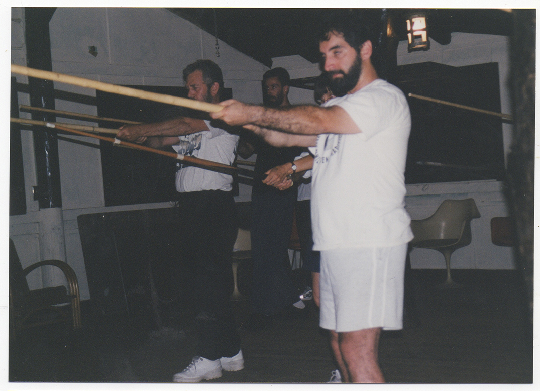 The New York Yangjia Michuan School has held a series of workshops, beginning in the mid-1990’s, in various locations. In the late summer of 2001 the group held a workshop at Baker Camp, North of New York City, that was heavily attended. It included work with the taiji staff and push hands exercises. Some of the folks in the photographs are Mike Basdavanos, Robert Politzer, John Rapoport, Arnold C. Baker II, Thomas W. Campbell, Chris Nelson, Charles Adamec, George Vlachos, and Marthe Keller.