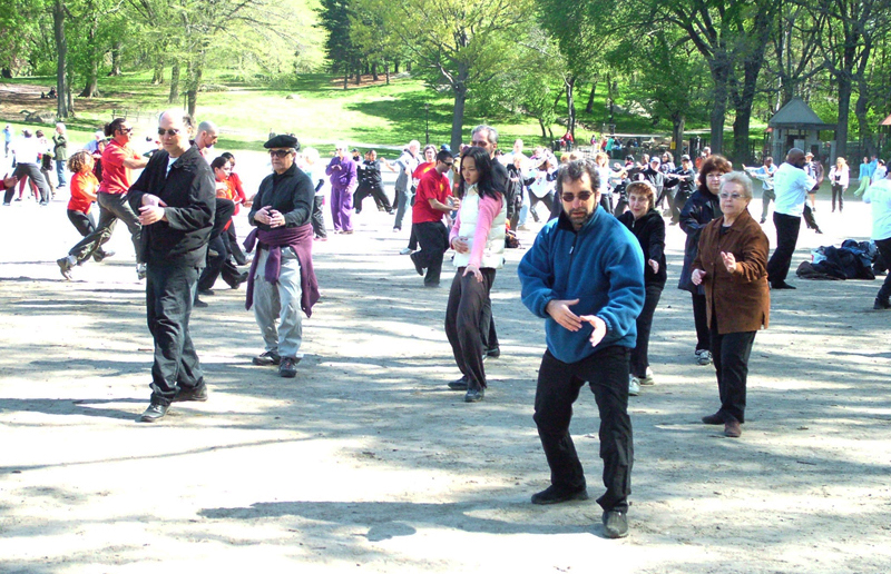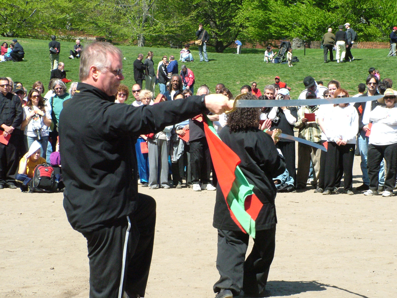 It was blustery and windy late April day of Taiji. Many of the ‘regulars” of that summer showed up to participate in the gathering of approximately 20 schools. Some of those pictured are Robert Simon, Robert Politzer, Jennifer Kim, George Vlachos, and the “Russian Mafia”. As always, the demos were interesting and well done and offered lots of opportunity for learning. Photos by Holly Leavy